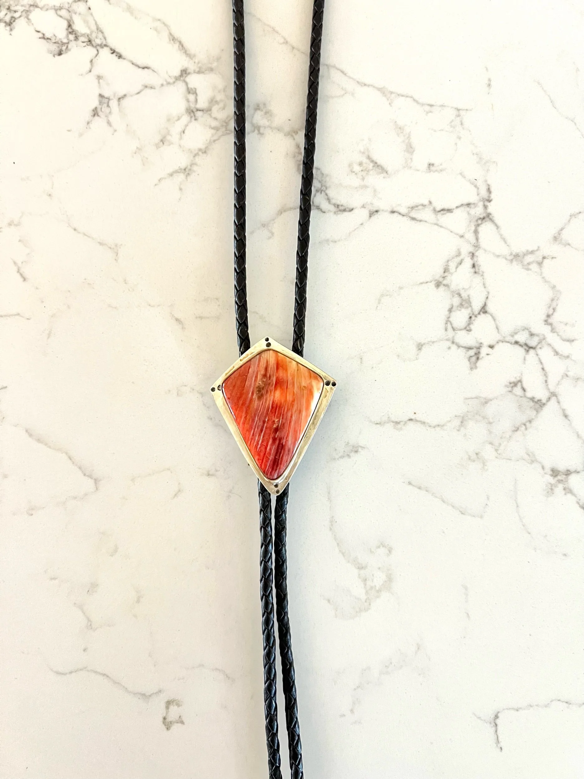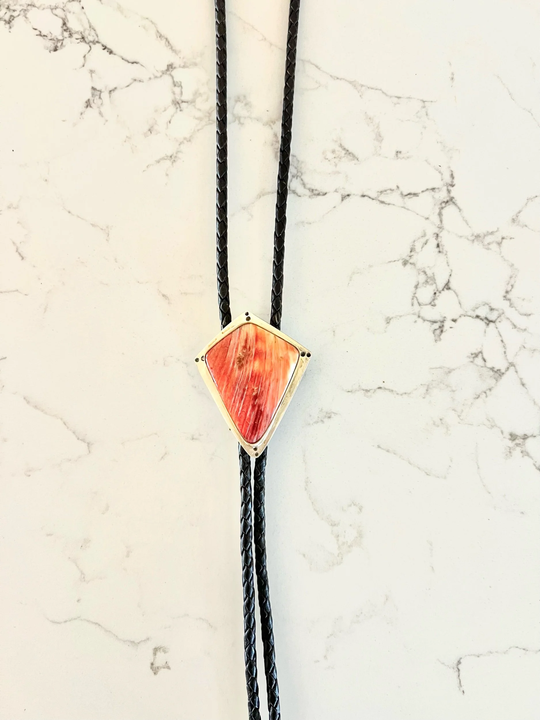 Shop › Bolo Tie Image 1 of 2 Image 2 of 2 Bolo Tie $160.00 Gold Filled + Sterling Silver BezelSterling Silver TipsBlack Leather CordExtra Large Spiny Oyster Add To Cart Added! Gold Filled + Sterling Silver BezelSterling Silver TipsBlack Leather CordExtra Large Spiny Oyster