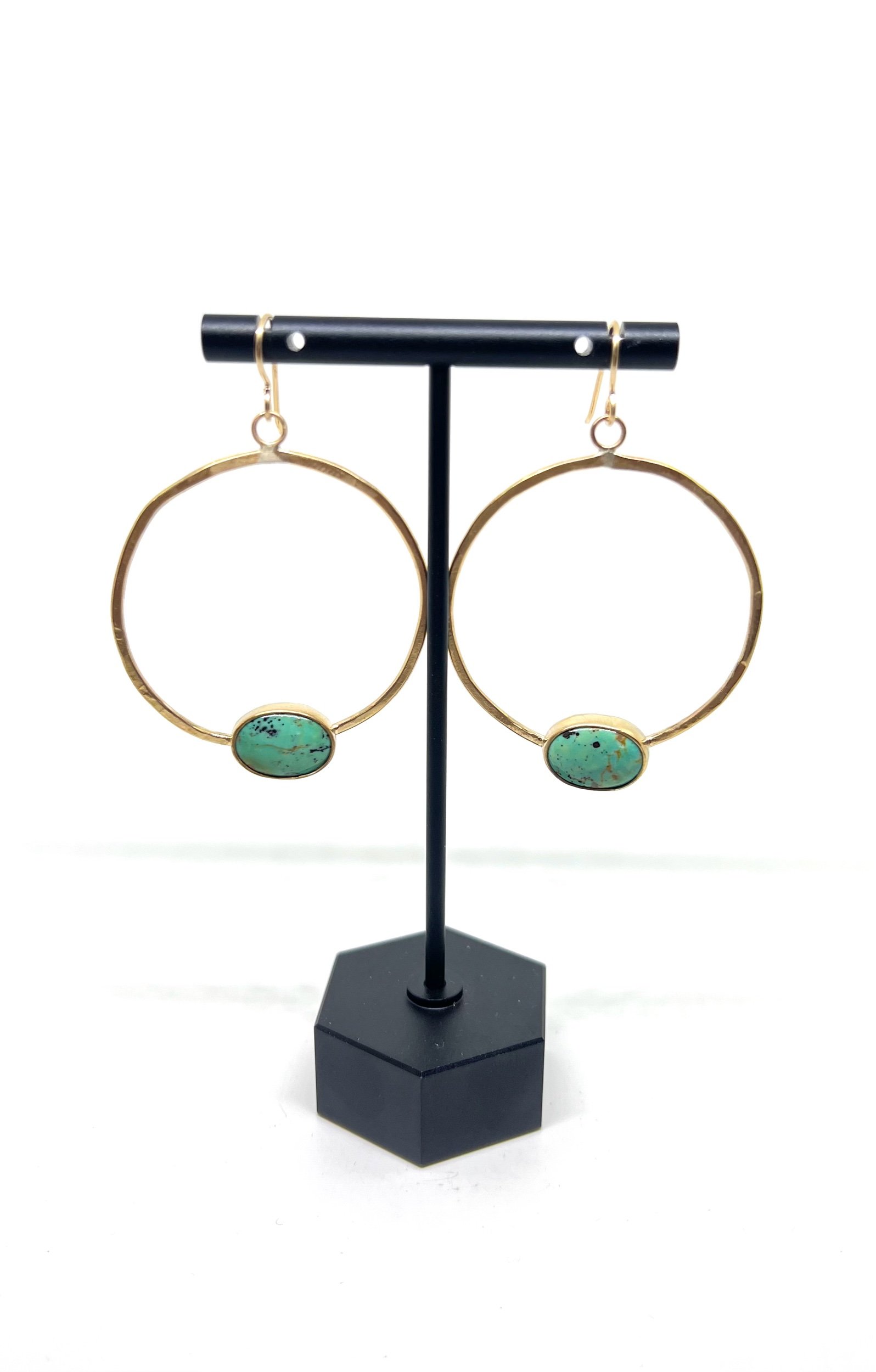 Shop › Bella Hoops Image 1 of 1 Bella Hoops $175.00 Gold Filled Hoops + HooksMedium Turquoise Stones Add To Cart Added! Gold Filled Hoops + HooksMedium Turquoise Stones