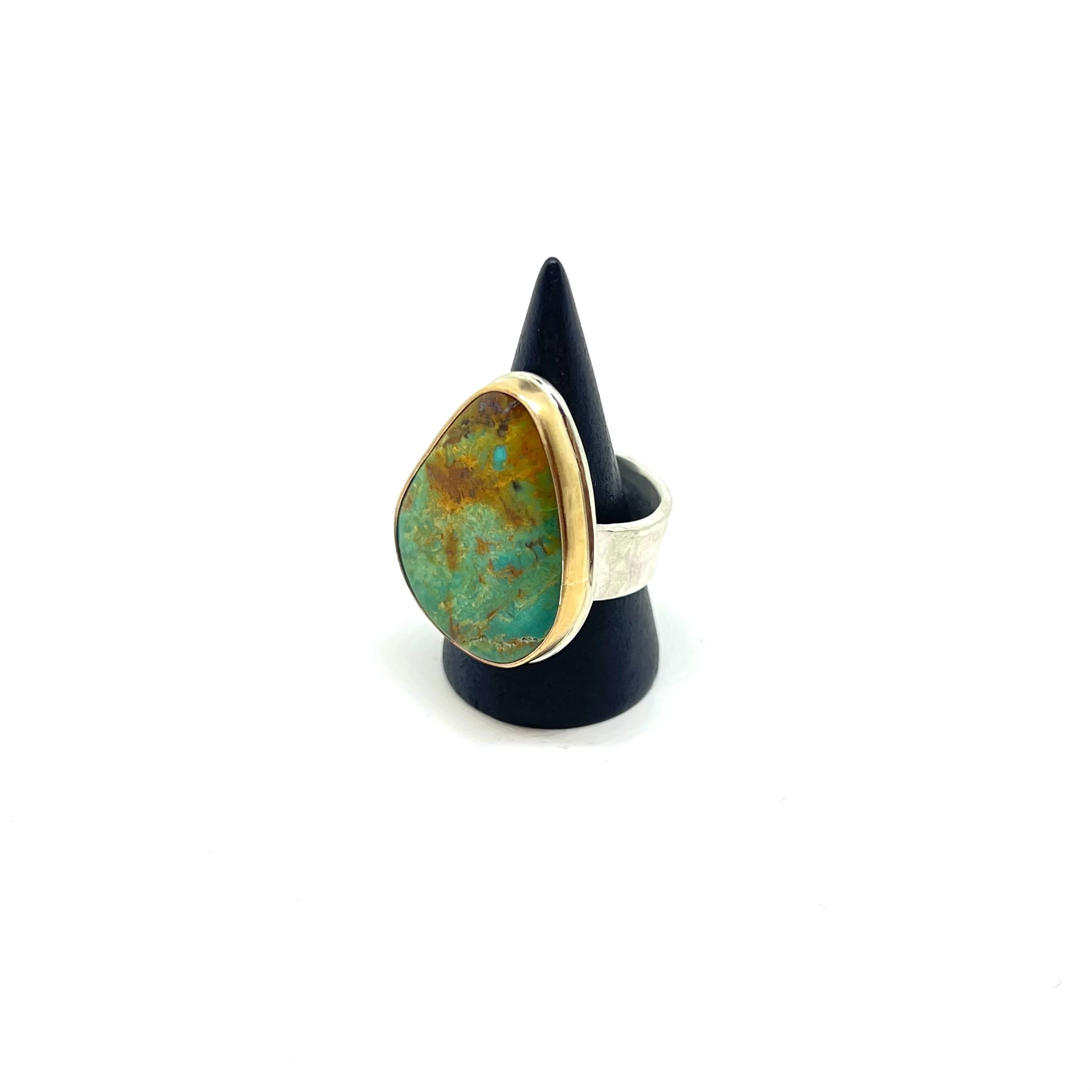 Shop › Eridanus Image 1 of 2 Image 2 of 2 Eridanus $340.00 Size 8 ¾ Gold Filled + Sterling Silver BezelSterling Silver Cuff BandLarge Turquoise Mt AZ Stone Add To Cart Added! Size 8 ¾ Gold Filled + Sterling Silver BezelSterling Silver Cuff BandLarge Turquoise Mt AZ Stone