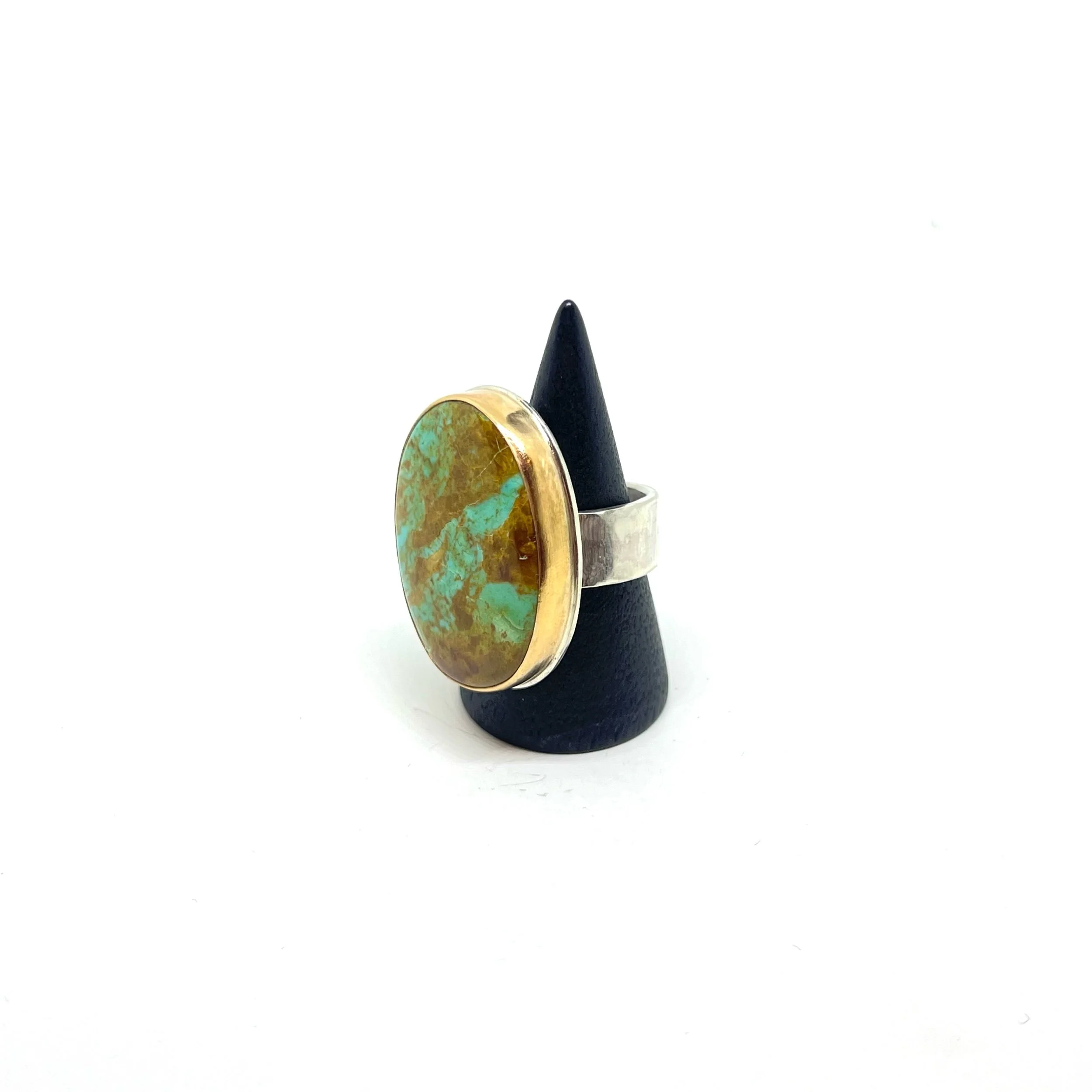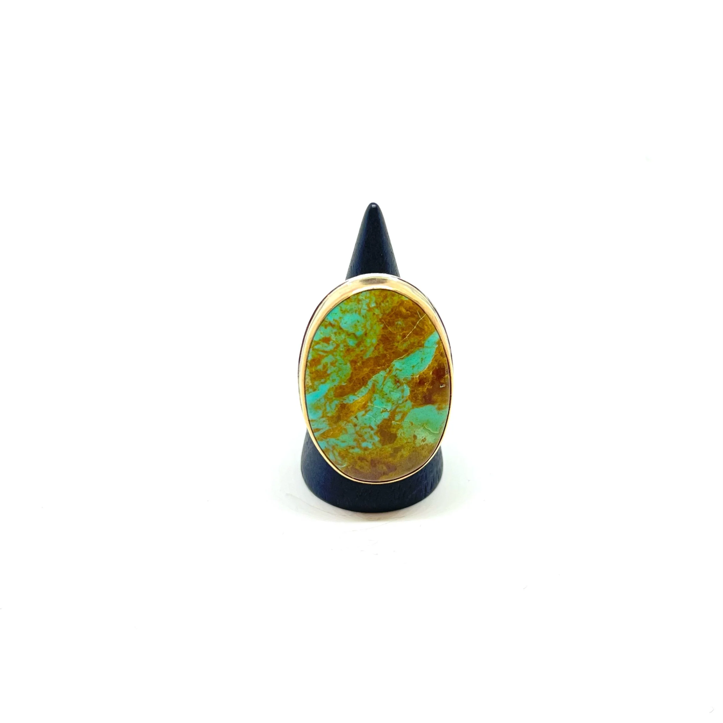 Shop › Adhara Image 1 of 2 Image 2 of 2 Adhara $340.00 Size 9 ½Gold Filled + Sterling Silver BezelSterling Silver Cuff BandLarge Turquoise Mt AZ Stone Add To Cart Added! Size 9 ½Gold Filled + Sterling Silver BezelSterling Silver Cuff BandLarge Turquoise Mt AZ Stone